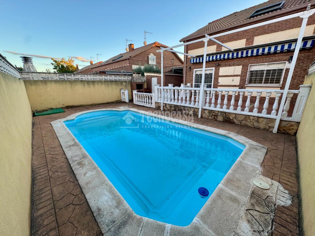 La parcela está diseñada para el disfrute, con piscina que invita a refrescarse en los días calurosos. Además, cuenta con un garaje AMERICANO que ofrece espacio tanto para coche como para moto. En la primera planta encontrarás tres amplios dormitorios, todos ellos luminosos y confortables. Dos baños completos, uno de ellos en el dormitorio principal, garantizan comodidad y privacidad. Ambos baños están equipados con bañera, y el del dormitorio principal cuenta con ventana, aportando luz natural.